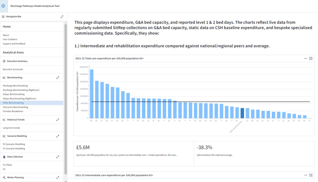 Benchmarking interface, part of the Discharge Pathways Model Analytical Tool