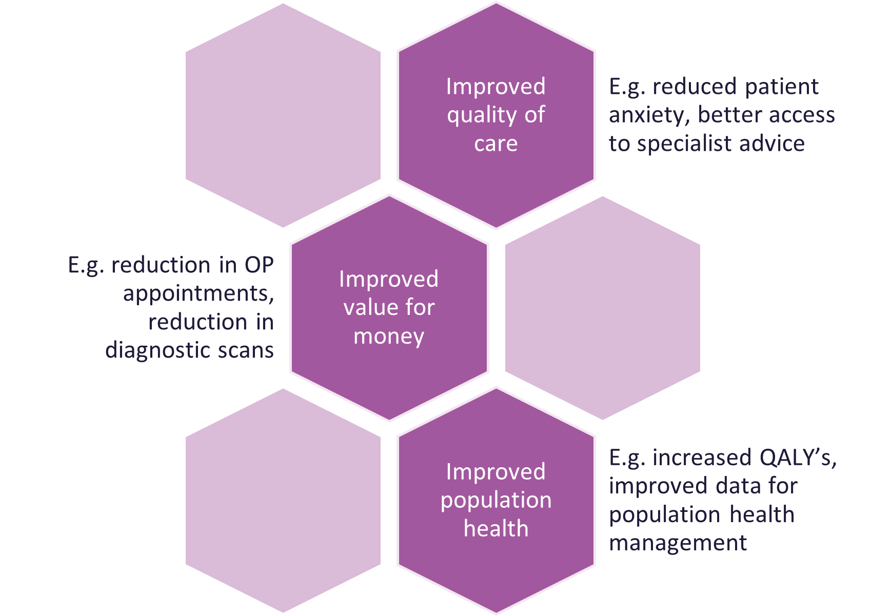 Our evaluations are built around the NHS Triple Aims framework. This assesses the impact of innovations on quality of care, population health and value for money.